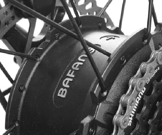 BAFANG est le leader mondial de la fabrication de moteurs pour vélos électriques. Notre modèle Horizon 1500 est équipé du moteur G063, qui offre un impressionnant couple maximal de 95 N.m lorsqu'il est associé à notre batterie de nouvelle génération 52V, incluse avec le vélo, permettant une puissance de pointe allant jusqu'à 1600 watts. Le moteur Bafang G063 se distingue par son efficacité exceptionnelle et sa puissance impressionnante.