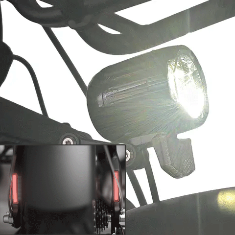 Découvrez notre solution d'éclairage de vélo avant-gardiste, alimentée par la batterie principale pour une performance optimale. Grâce à des sources lumineuses à haute puissance, notre système garantit une visibilité accrue lors de vos déplacements nocturnes. La lampe frontale, équipée de LED hautement performantes, émet une luminosité exceptionnelle de 10 000 LUX à un mètre et 400 LUX à cinq mètres, élevant ainsi le standard de qualité en matière d'éclairage de vélo. De plus, la fonctionnalité de la lampe arrière est conçue pour intensifier son éclat lors des phases de freinage, offrant une sécurité supplémentaire sur la route.